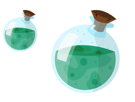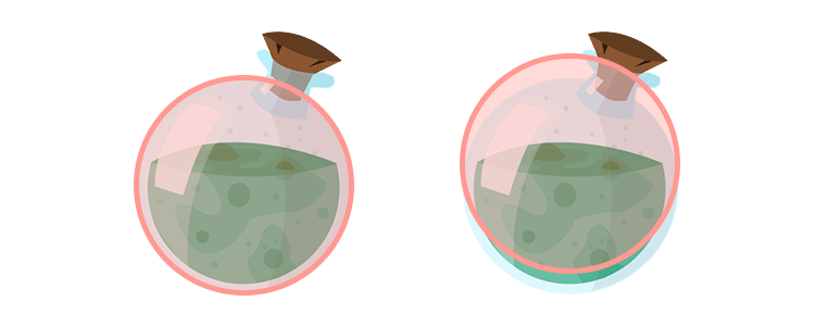 As explained in the previous tutorial, many games use this method of using a simple shape (a circle in this case) as a hitbox for a more complex one (the potion bottle, with an irregular round shape). There is a small flaw however. The neck of the bottle doesn't trigger a collision because it has no hitbox, it sticks out of the circle. If that's a problem for your game, try to use a different or more complex hitbox. Maybe a rectangle shape or perhaps a combination of a rectangle and a circle.