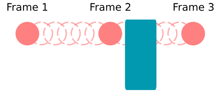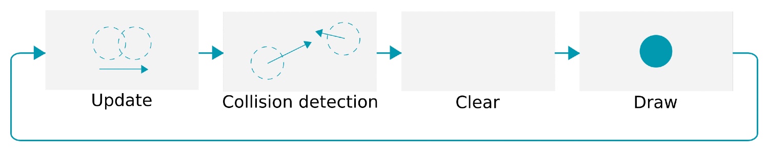 One final note about collision detection. The above example detects collisions by checking if two objects overlap. This is a good solution in many cases. But it won't work when your objects move at great speed. When the speed is higher than the size of your smallest object, objects have a chance of skipping the collision check. They pass through each other.