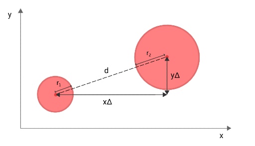 Imagine you have two circles, each with their own radius. They are placed with a distance between them. The circles would overlap if the distance is smaller than the sum of the radius of both circles. Since circles are round, this would even work when rotating the objects, they don't have to be axis-aligned.