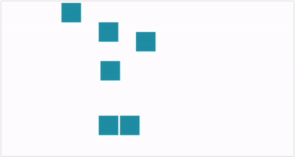 With this piece of code in place, you can finally check out the result. Here are the squares again, but this time they react upon each other.