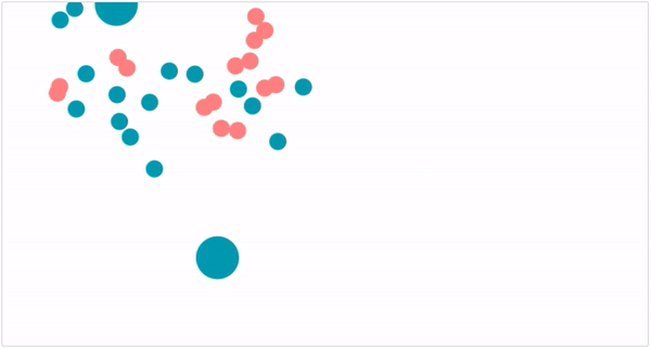 For the effects of gravity to show nicely, you can limit the movement of your objects to the edges of the canvas. It will act like a closed box on which the objects can bounce off.