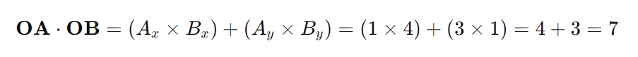 Here's the calculation of the dot product of vectors OA(1,3 and OB(4,1)