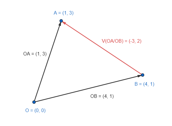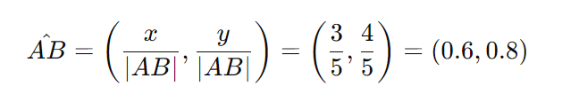 Here's the calculation of a vector AB(3,4) point from A(2,3) to B(5,7):